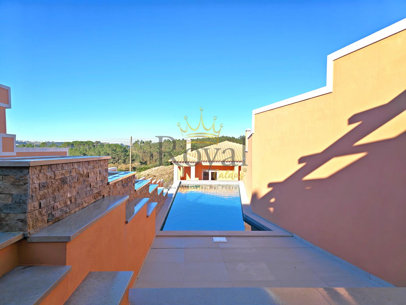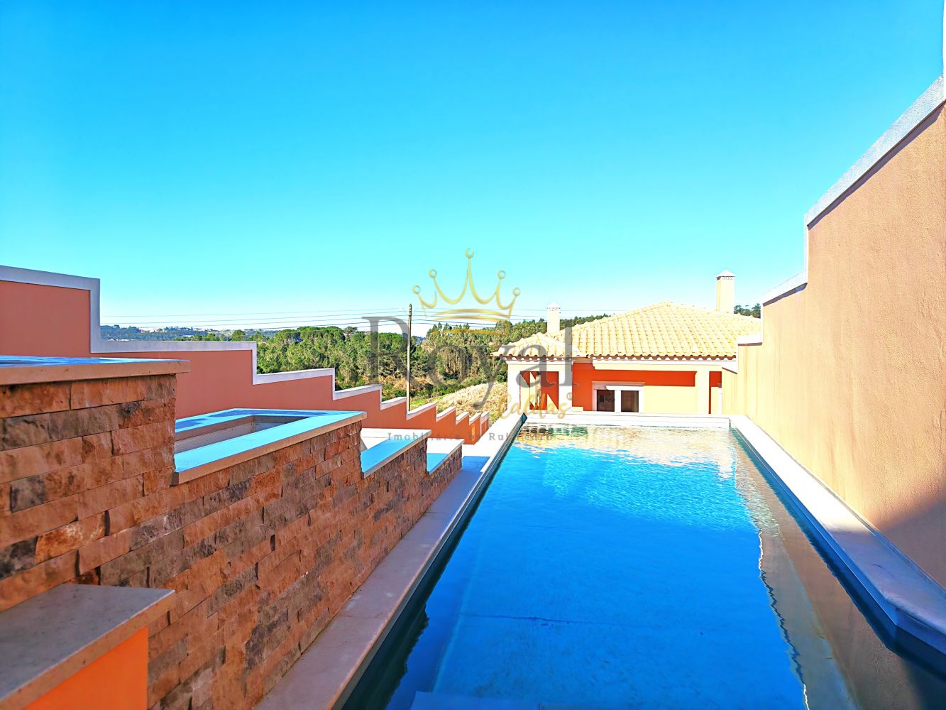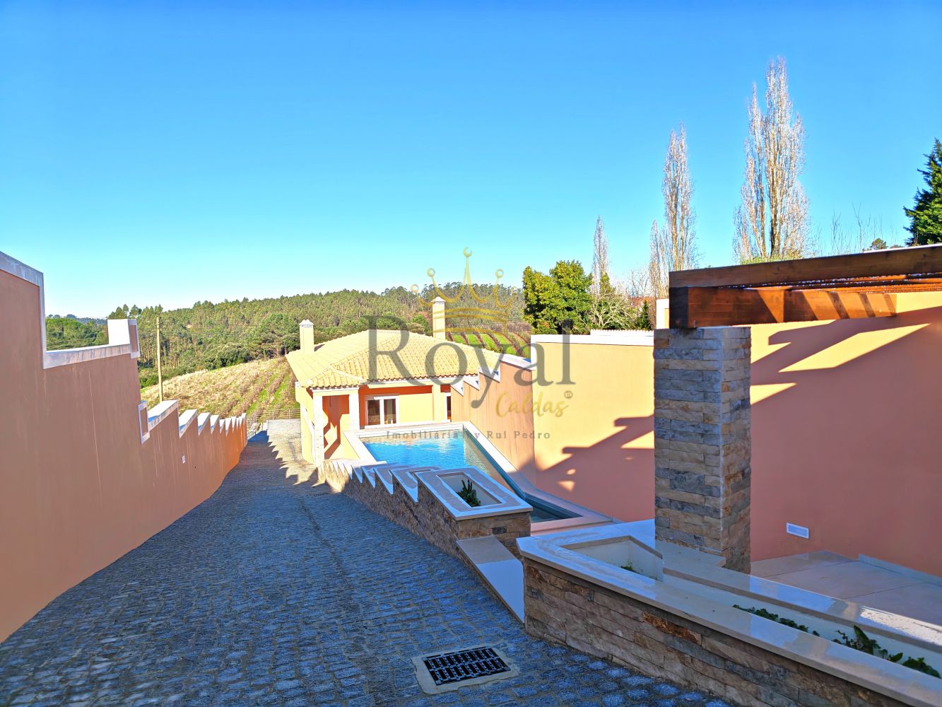 As características do terreno, serviram de mote para colocar as várias peças do "puzzle" no seu devido lugar, referindo-me á entrada reservada, a um plano de lazer junto a uma linda e protegida piscina, a implantação do imóvel, com a sua deslumbrante vista, espaço em caçada a seguir á moradia, onde as crianças poderão estar á sua vontade, e um terreno agrícola, não muito grande mas que serve para lides agrícolas.